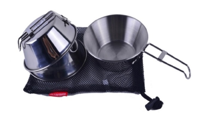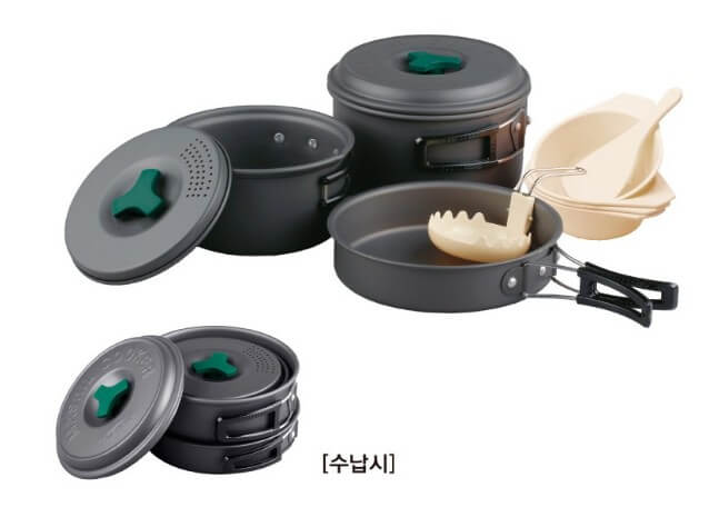 ▶인원에 맞게 사용할 수 있는 겹겹이 겹쳐있는 보편적인 코펠세트를 사용.