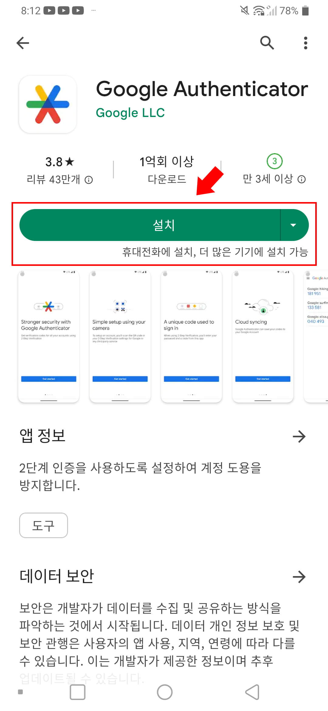 ▶ Google play나 App Store에서 Google OTP를 검색합니다.